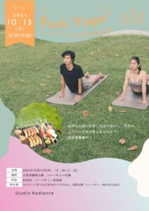 こんにちは!八尾・河内山本のヨガ教室ラディアンスです。 スポーツの秋がやってきました。毎年恒例になっている八尾久宝寺緑地で行う外ヨガとバーベキューのご案内です。外の気持ちよい空気を吸いながら、ゆったりとしっかりと動くヨガ […]