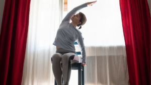椅子のポーズは、自宅でも簡単に行えますが、膝がつま先より前に出ないように注意しましょう。誤った姿勢で行うと膝に負担がかかり、逆に痛みが出ることがあります。